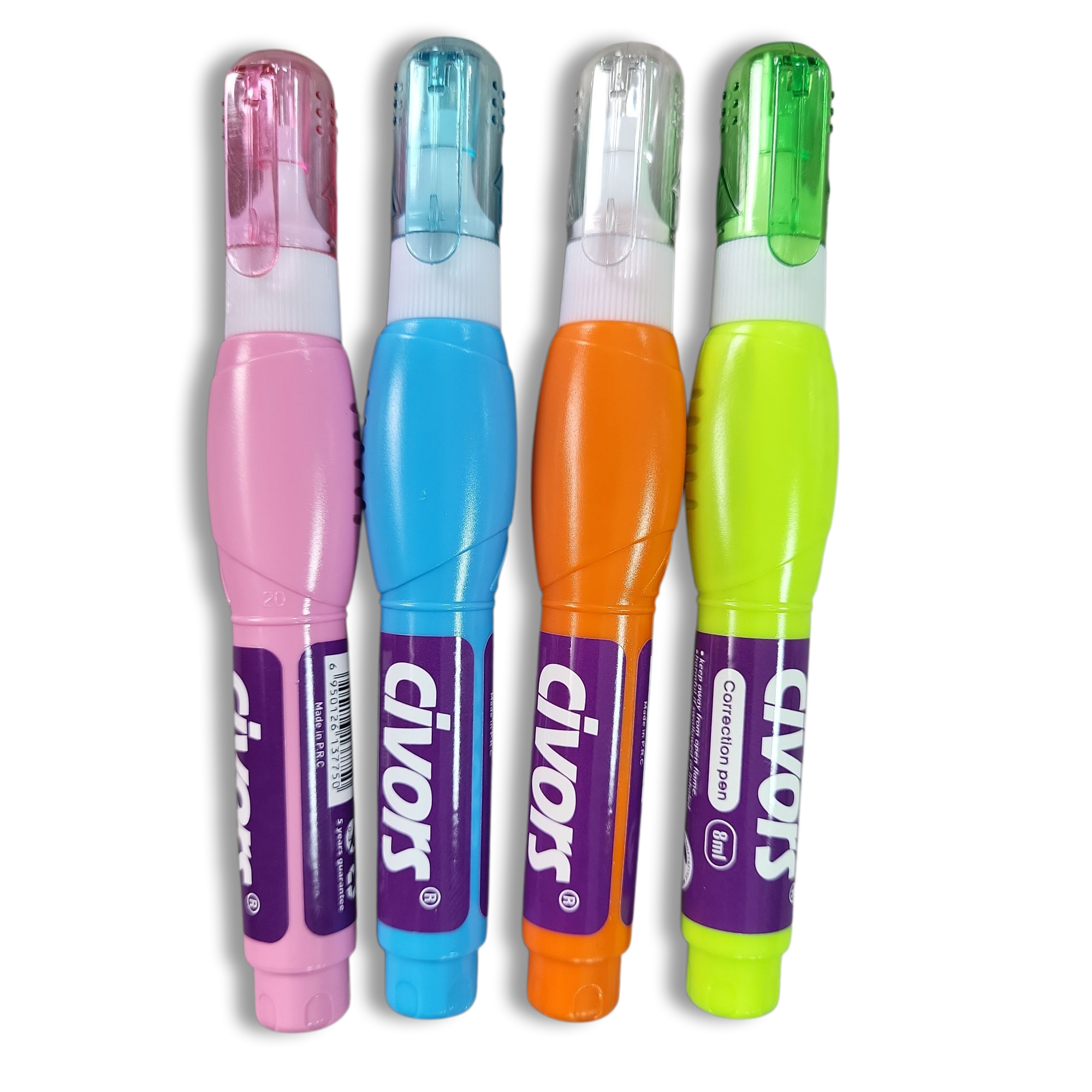 Correcteur Civors, pointe fine, séchage rapide, format 8 ml, disponible en boîte de 24 pièces. Idéal pour l’école, le bureau et la maison.