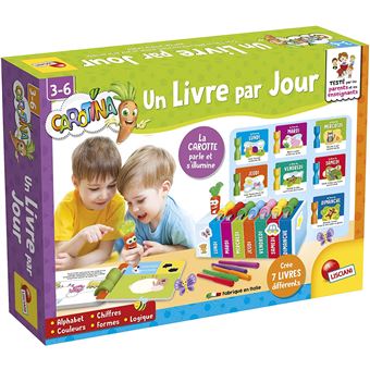 Un grand coffret qui permet de créer, avec Carotte magique, un livre par jour sur les thèmes éducatifs suivants : Alphabet, nombres, mots, la ferme, les animaux, les couleurs.
