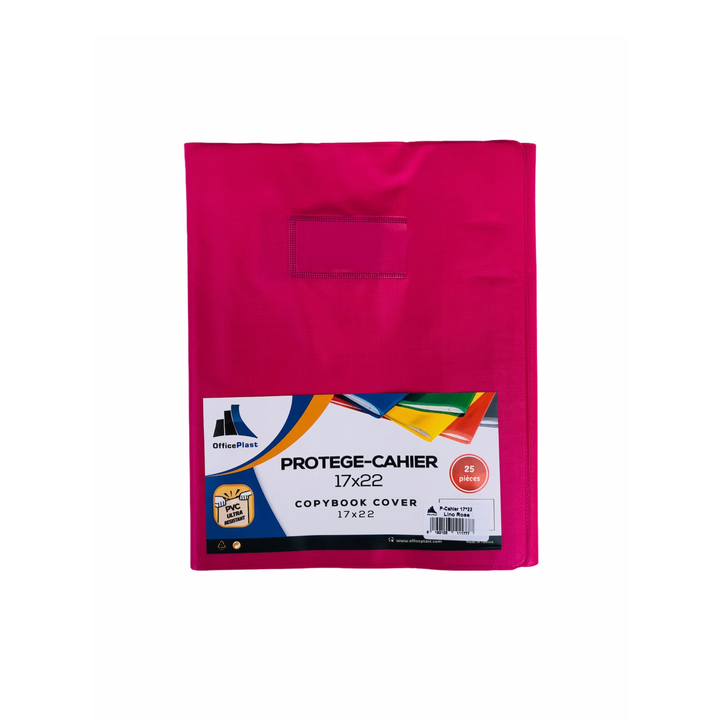 Protège-cahier lino rose Office Plast 17×22, lot de 25 pièces, design à carreaux roses, protection robuste en PVC.