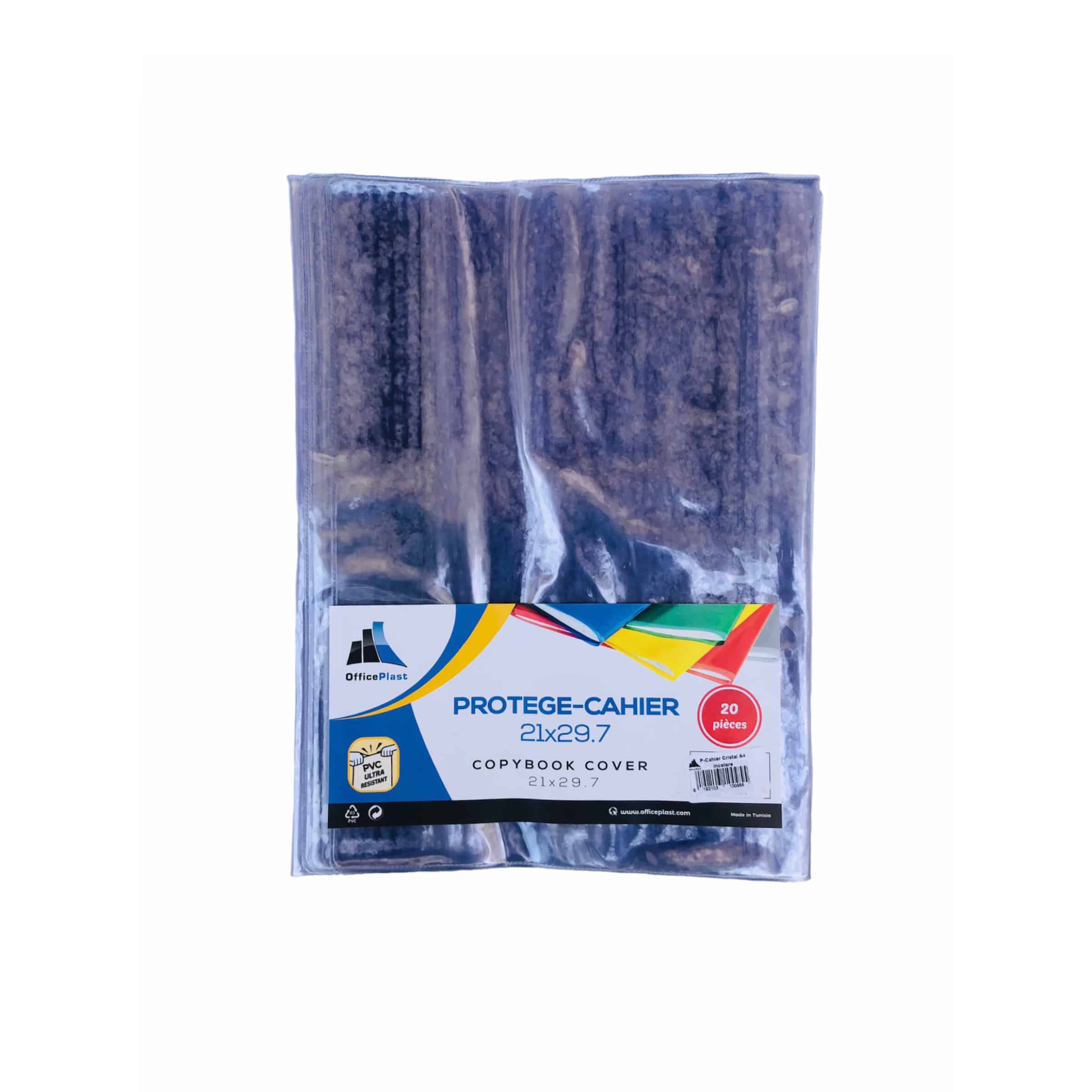 Protège-cahier transparent grand modèle 21×29,7, lot de 20 pièces, protège efficacement vos cahiers A4 tout en conservant leur apparence.
